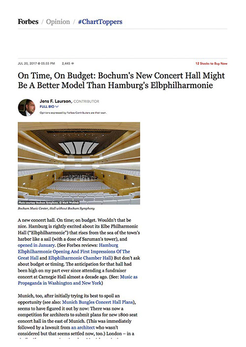 02/12Musikzentrum BochumOctober 2016, opening night of the 950-seat concert hall with the Bochumer Symphoniker conducted by Steven Sloane. Photo © Kahle Acoustics