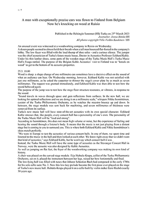 Team Yann Jurkiewicz, Vincent Berrier, Eckhard Kahle, Kahle Acoustics • Henrik Möller, Akukon Finland Oy.